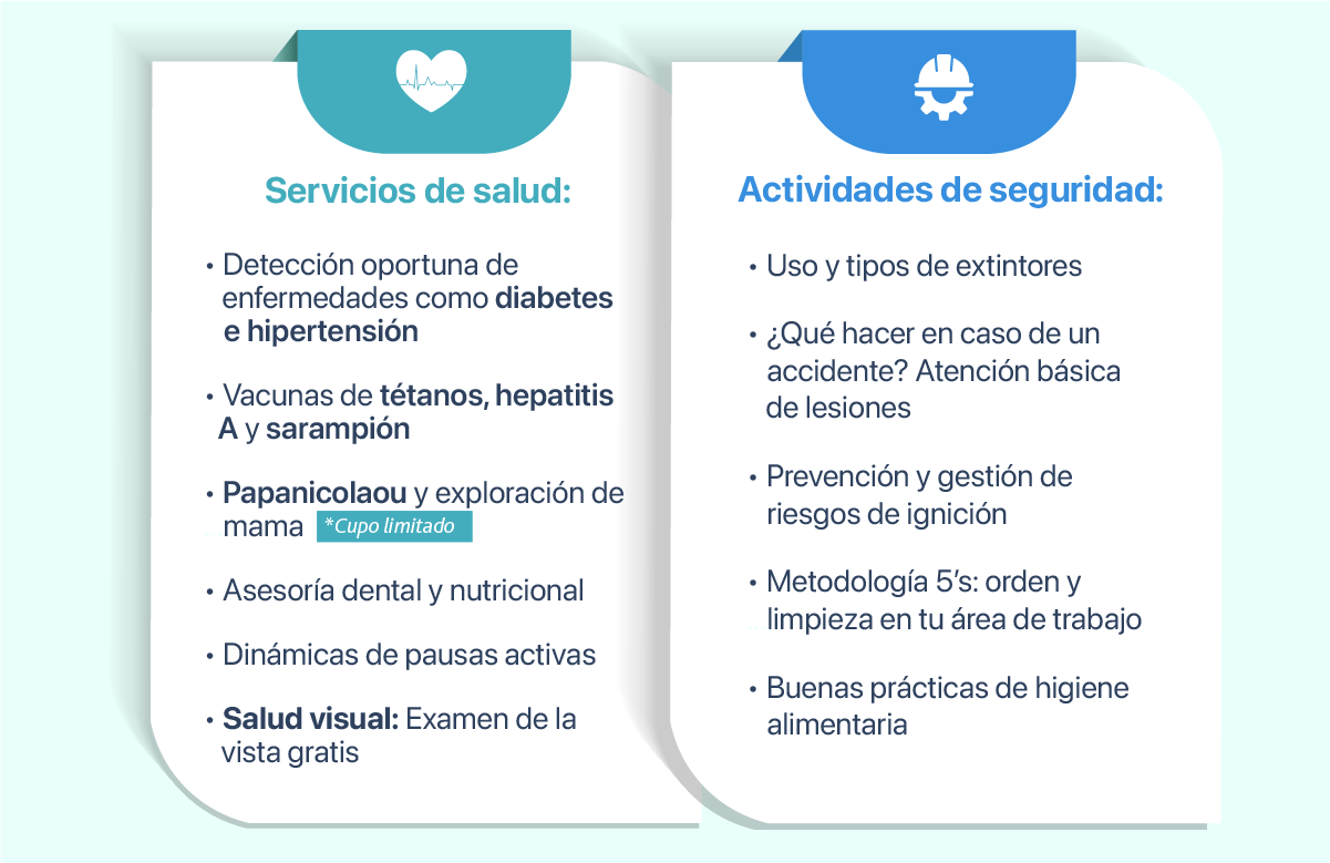 Será un espacio dirigido a fortalecer la cultura de prevención, impulsar hábitos saludables y brindarte servicios de medicina preventiva junto con actividades dinámicas que te orientarán para actuar y trabajar de forma segura.